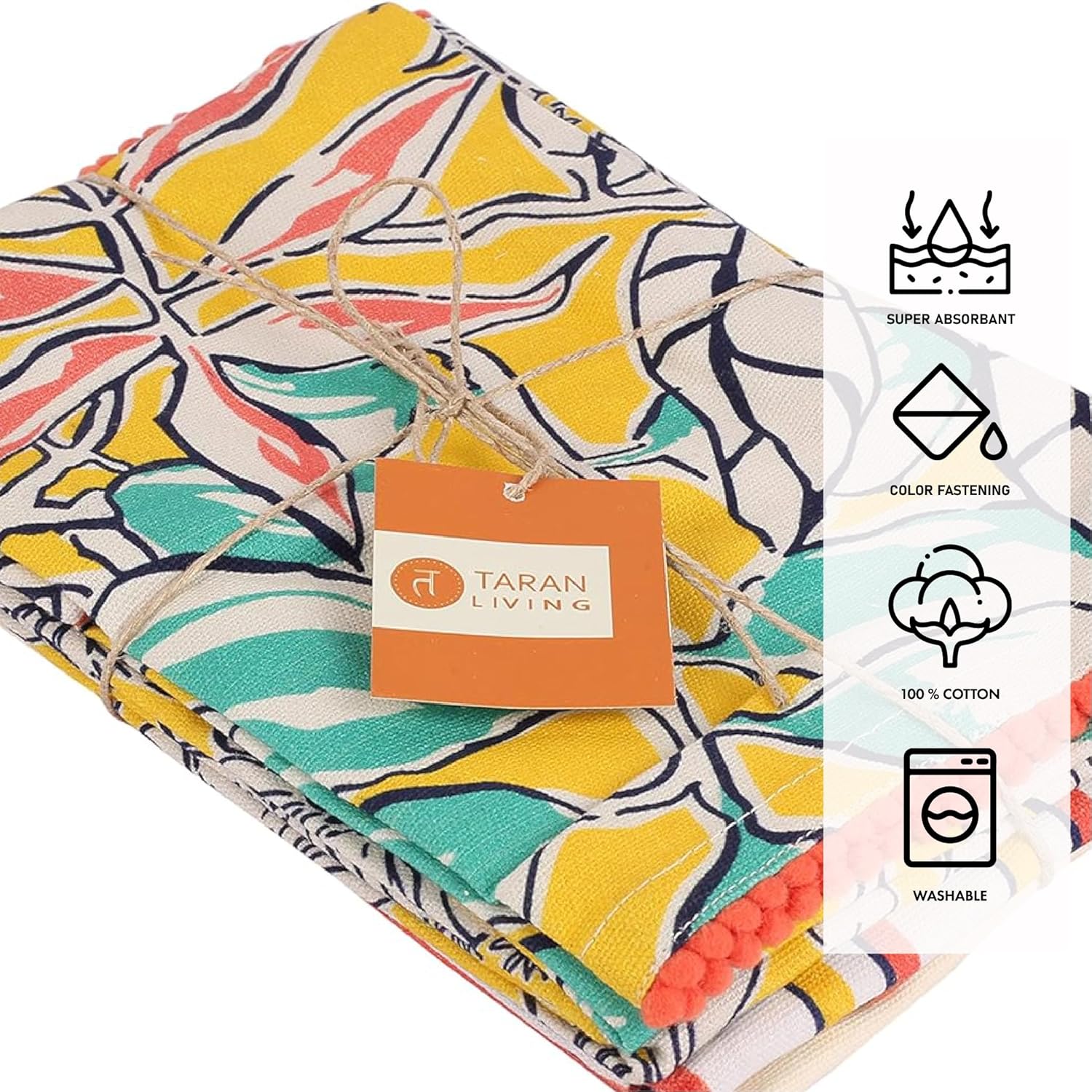 Valentine's Printed Kitchen Dish Bar and Tea Towels Cotton, 18x28 inch with Trims, Cotton Dish Towel Sets (Yellow, Set of 4)